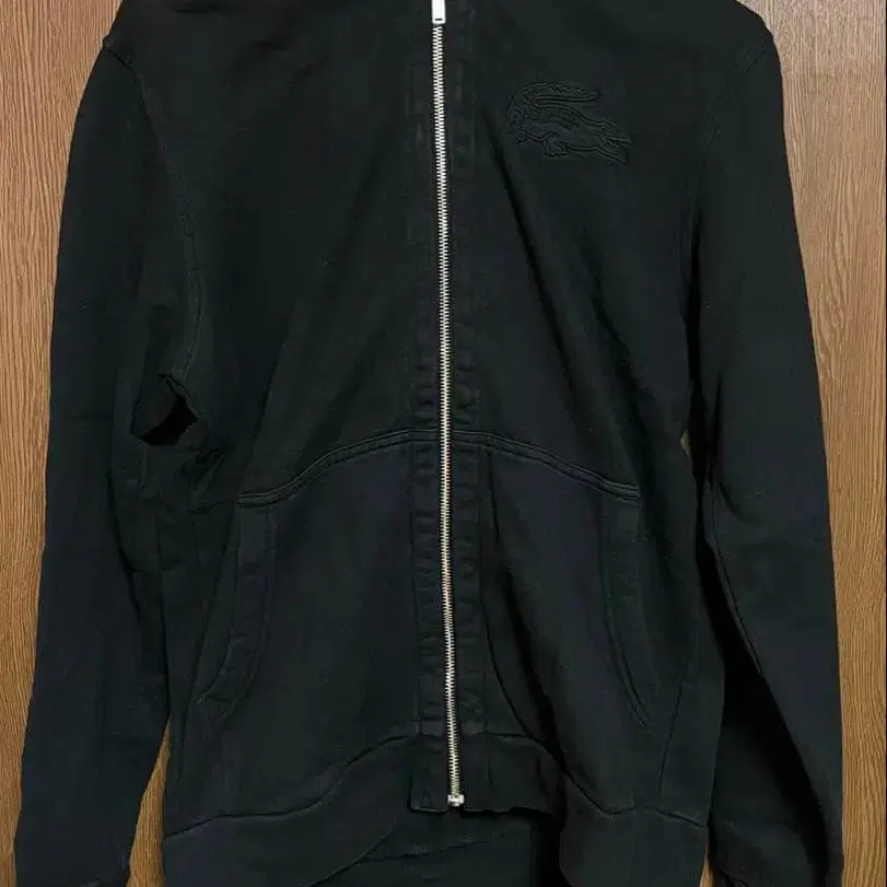 Lacoste 블랙 풀 집업 후드티 빈티지 워시