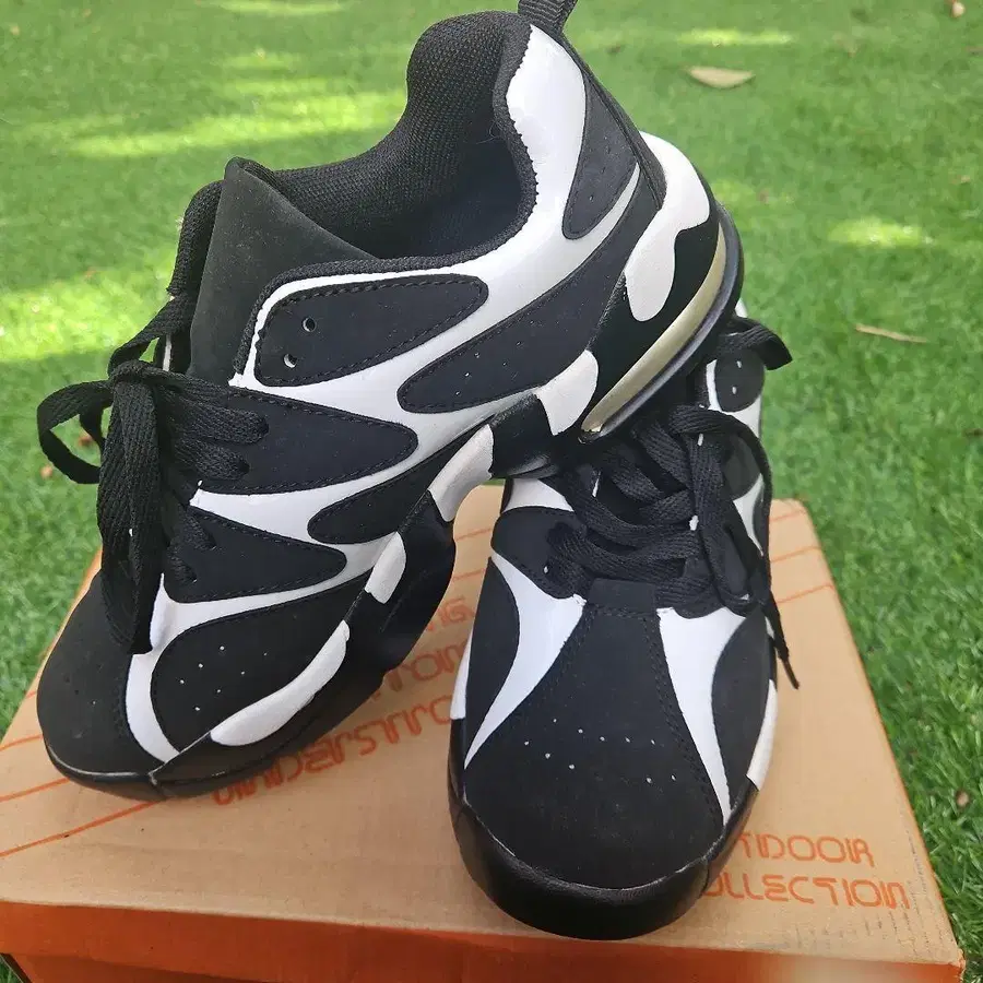블랙/화이트 스니커즈, 에어 쿠션 포함으로 쾌적한 착용감.