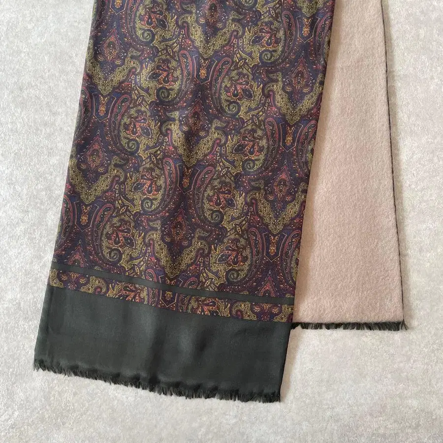 자동 번역되었어요. 원문보기페이즐리 무늬의 다크 그린과 퍼플 머플러입니다. 뒷면은 캐시미어였던 것 같습니다. 고급 소재로 따뜻할 것 같습니다.
