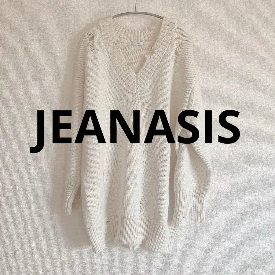 새상품급 JEANASIS 지나시스 화이트 데미지 V넥 니트 화이트