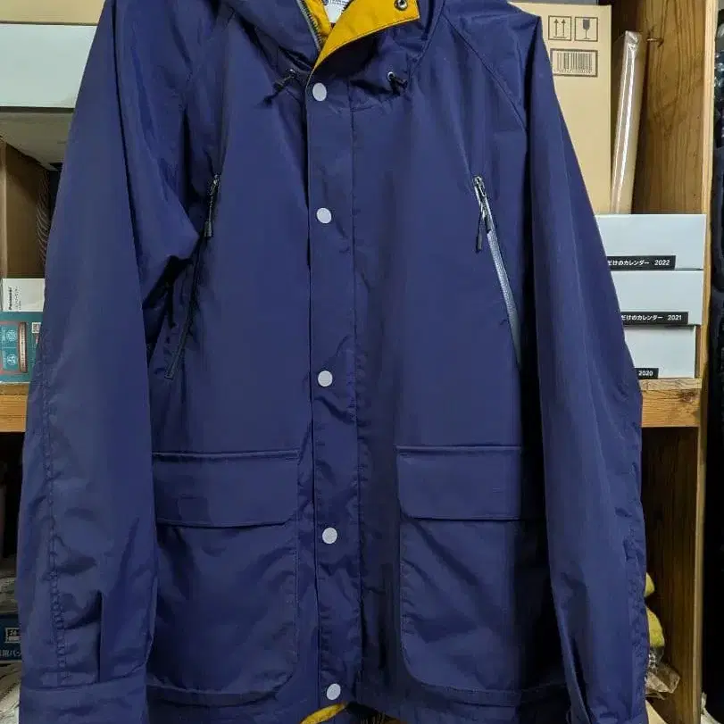 ● 양쪽 겨드랑이에 지퍼 포켓, 왼쪽 허리에 패치 포켓과 핸드 워머, 오른쪽 가슴에 안쪽 포켓 부착.