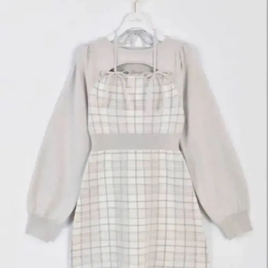 evelyn 아이스 그레이 리본 체크 타이트 OP