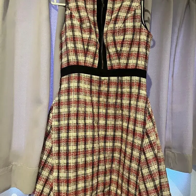 체크 무늬 슬리브리스 원피스