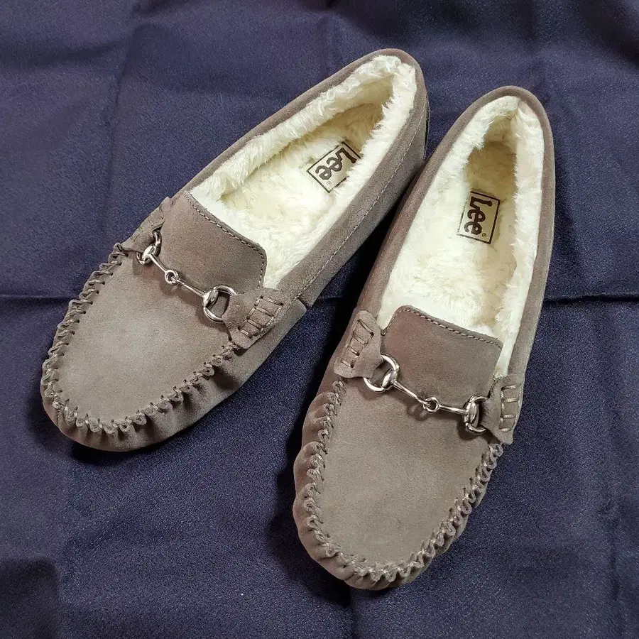 그레이 스웨이드 퍼 안감 모카신