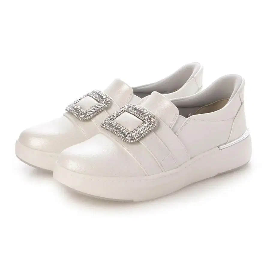 비쥬 장식 화이트 슬립온 스니커즈