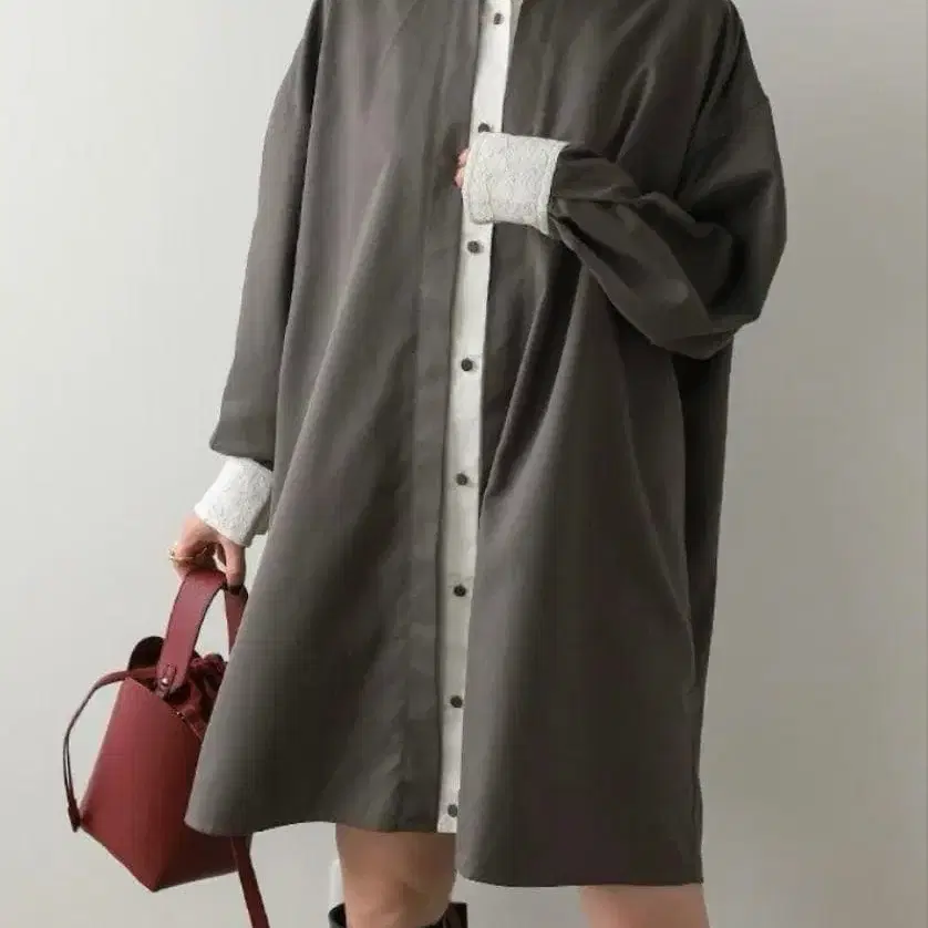 펄 오픈 카라 셔츠 원피스