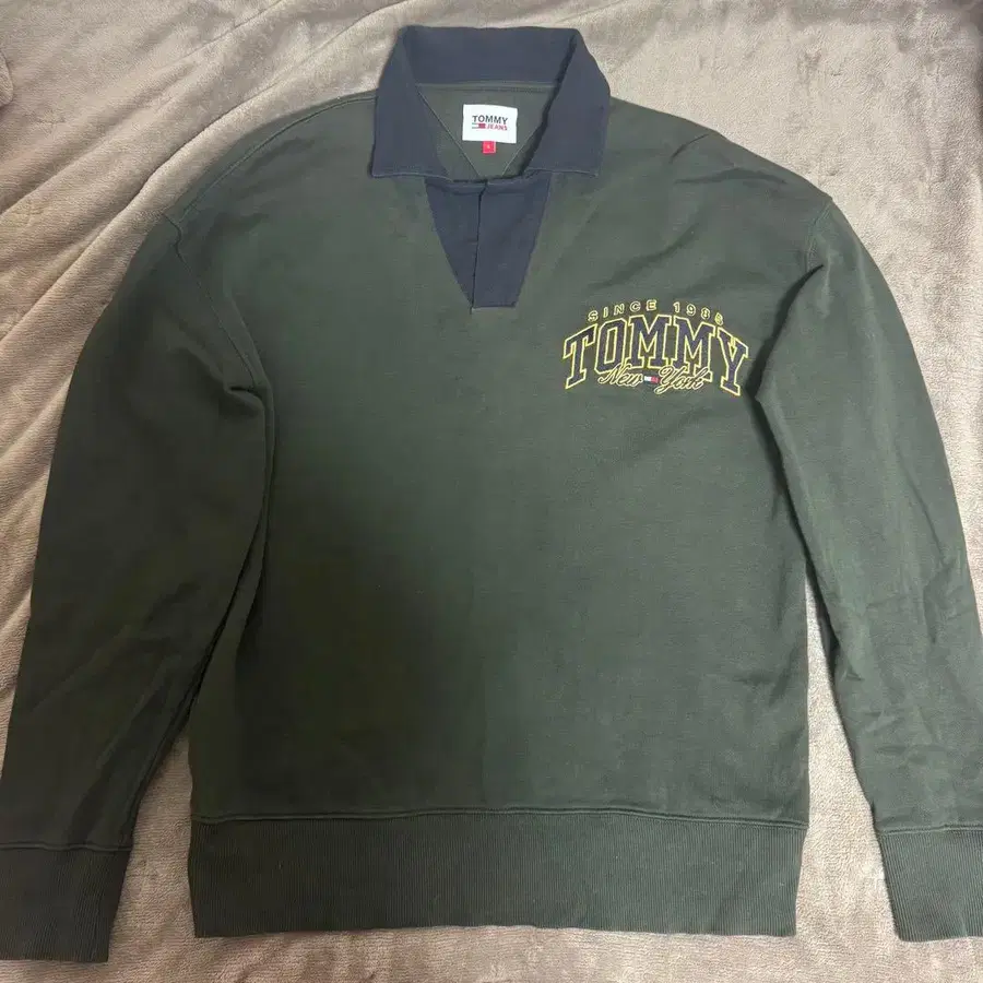 타미힐피거 Tommy hilfiger 카키 카라 부착 긴팔 티셔츠