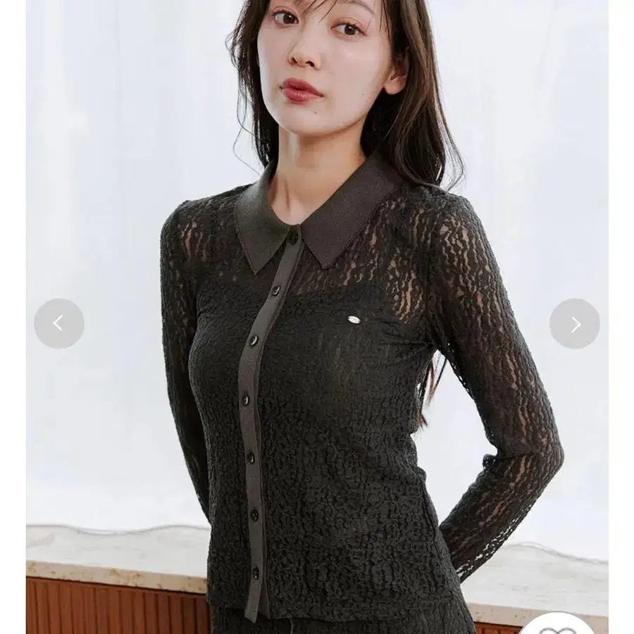 SNIDEL 컷 레이스 폴로 블라우스 DGRY