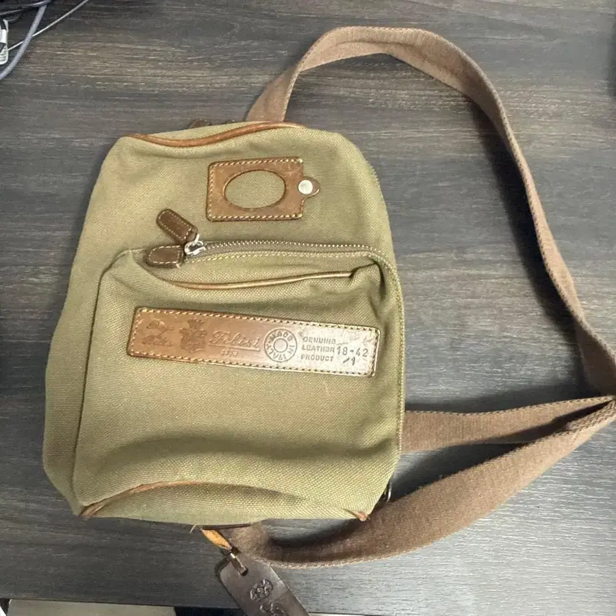올리브 그린 캔버스 숄더백