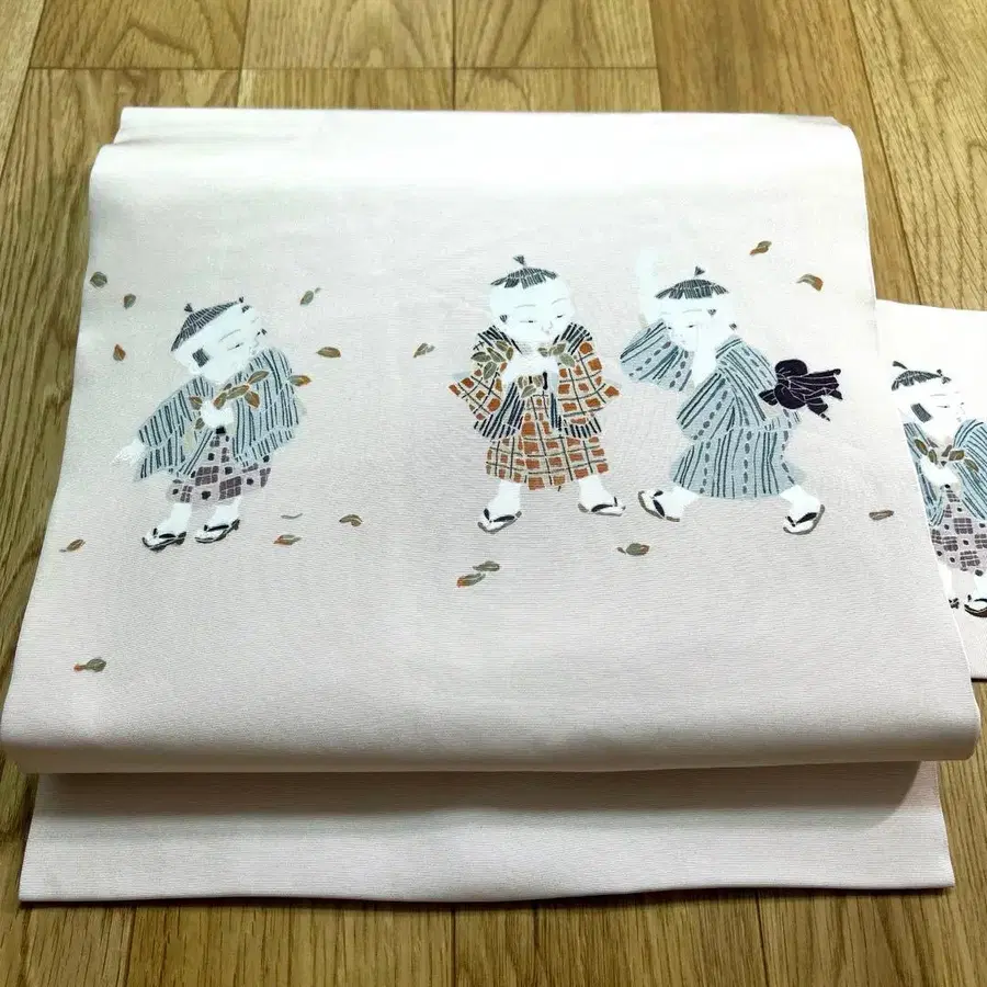 시오제 오비(약 27.3cm) 유젠 동자 벚꽃 쥐색 순수 실크 506