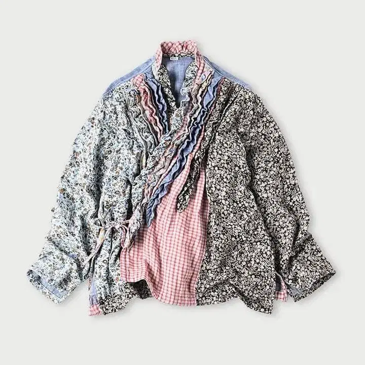 • Super hakka 꽃 자수 퀼팅 블라우스 빅 사이즈