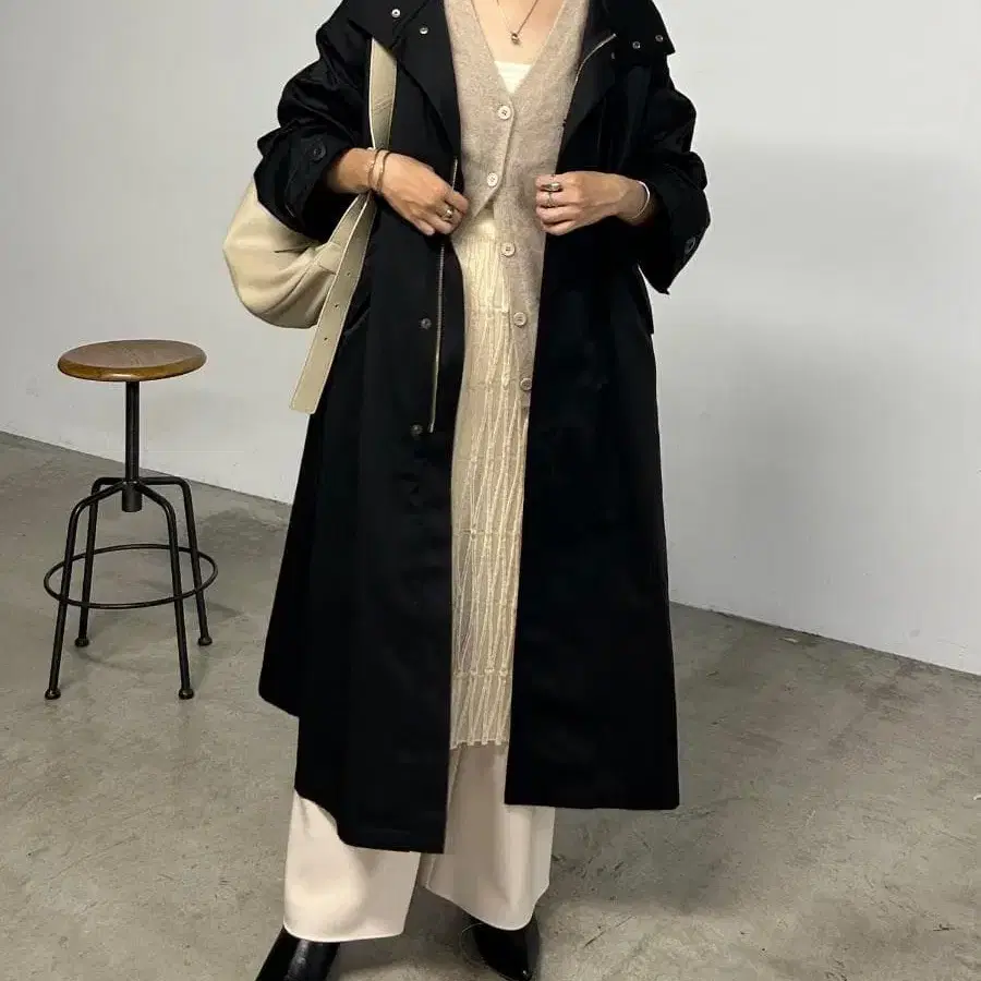 • 새상품급 개럴개런트 후드 숄카라 가운 코트 블랙