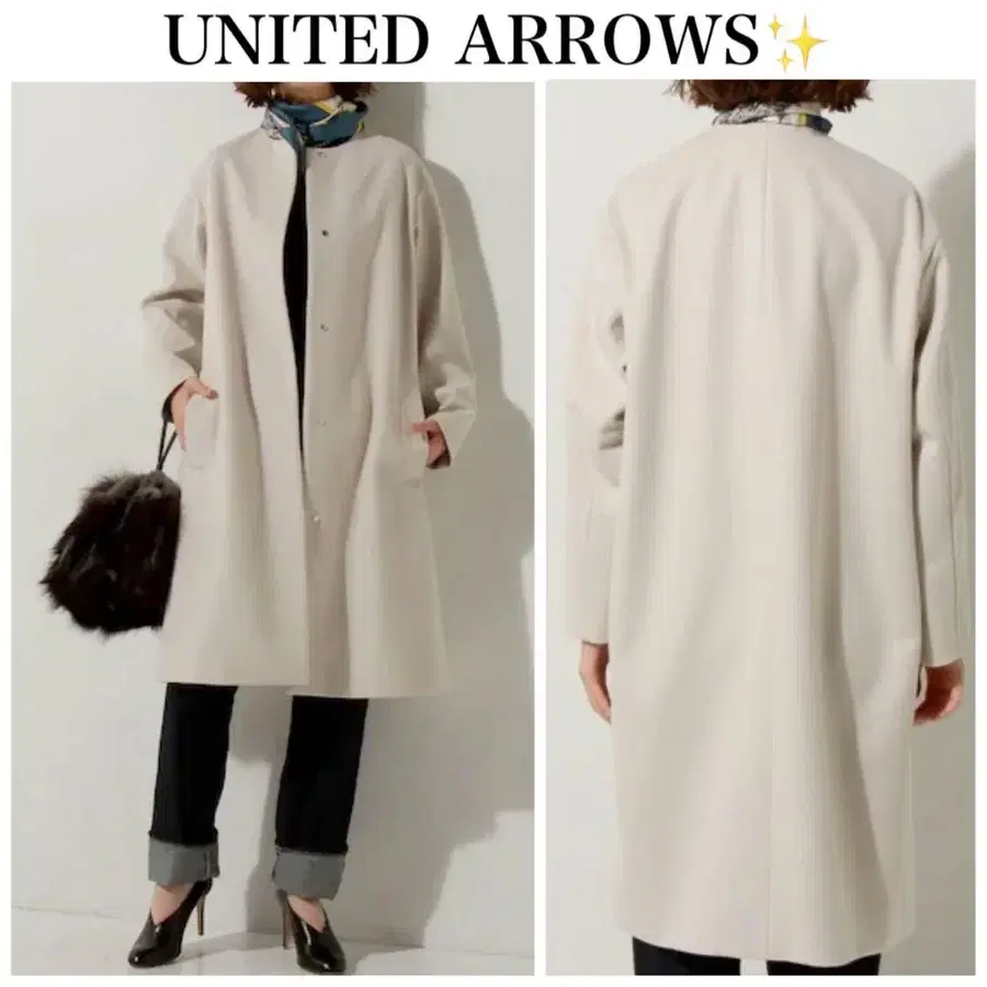 유나이티드 애로우즈 노카라 코트 울 드롭 숄더 38