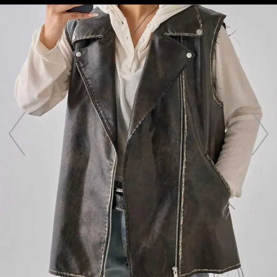 봄에 레이어드해서 즐길 수 있는 가죽 베스트.