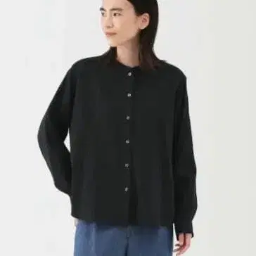 MUJI 택 포함 미사용 새상품 카포크 혼방 이중 거즈 블라우스 블랙