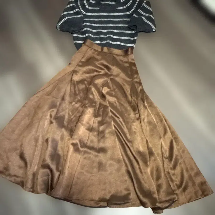 anuans 라이트 더블 새틴 볼륨 내로우 스커트