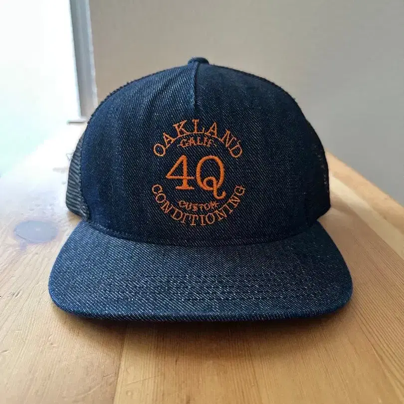 4q conditioning 데님 오렌지 자수 메쉬 캡
