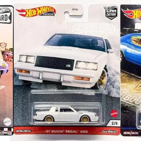 3대 세트의 핫휠, '63 CHEVY NOVA, '87 BUICK REGAL GNX, '69 CHEVELLE SS 396 포함.