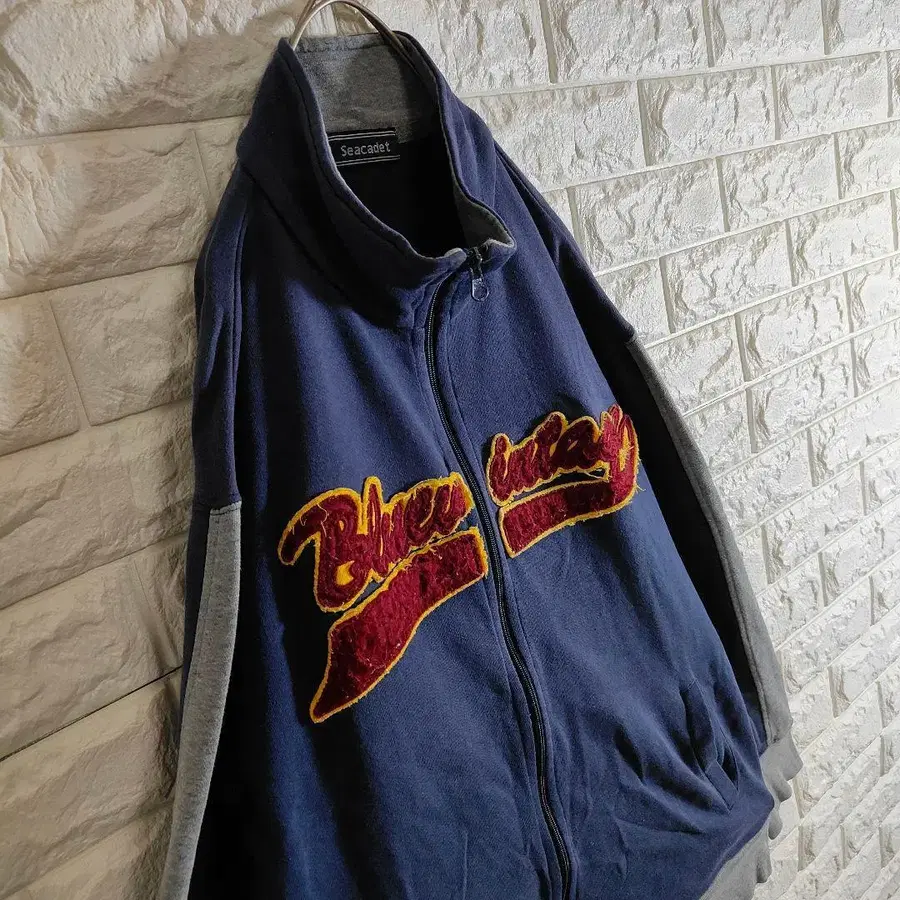[ 빅 로고 자수 ] 풀 집업 맨투맨 와펜 트레이닝복 네이비 M