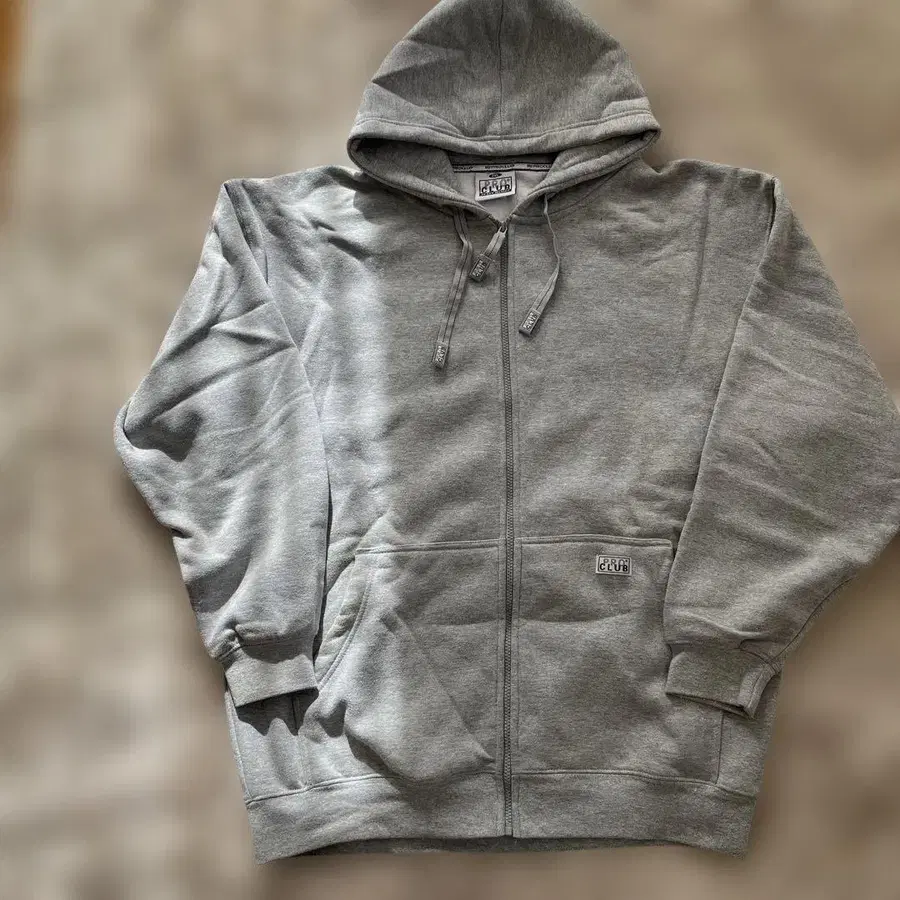 풀 집업 그레이 후드티, 프로 클럽 로고 포함.