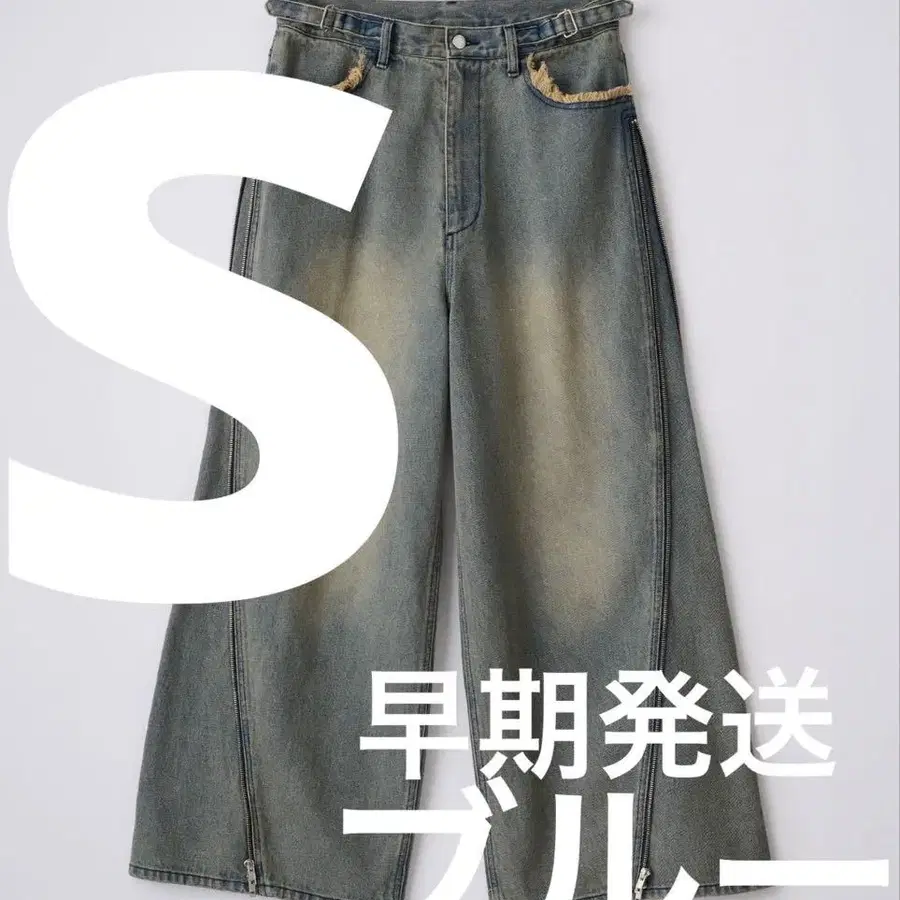 GRANCY 지퍼 디자인 배기 데님 팬츠 블루 S