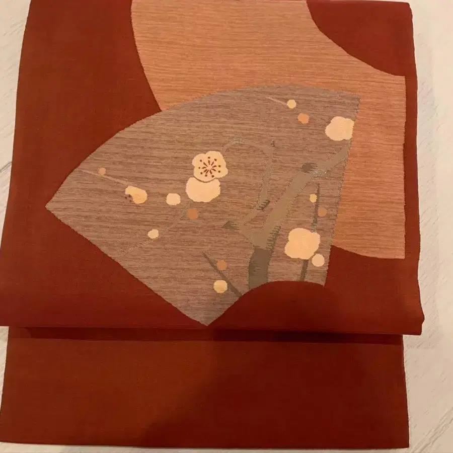 부채 모양에 매화가 짜여 있어 성인 여성의 귀여움을 돋보이게 하는 오비입니다.