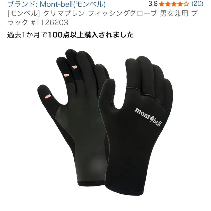Mont-bell 클라이마프렌 낚시 그로브 블랙 사이즈 L