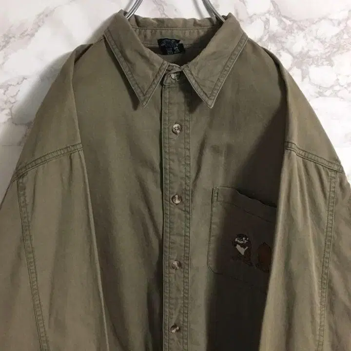 [ 캐릭터 자수 ] 루니툰 태즈매니안 데빌 코튼 셔츠 브라운 L