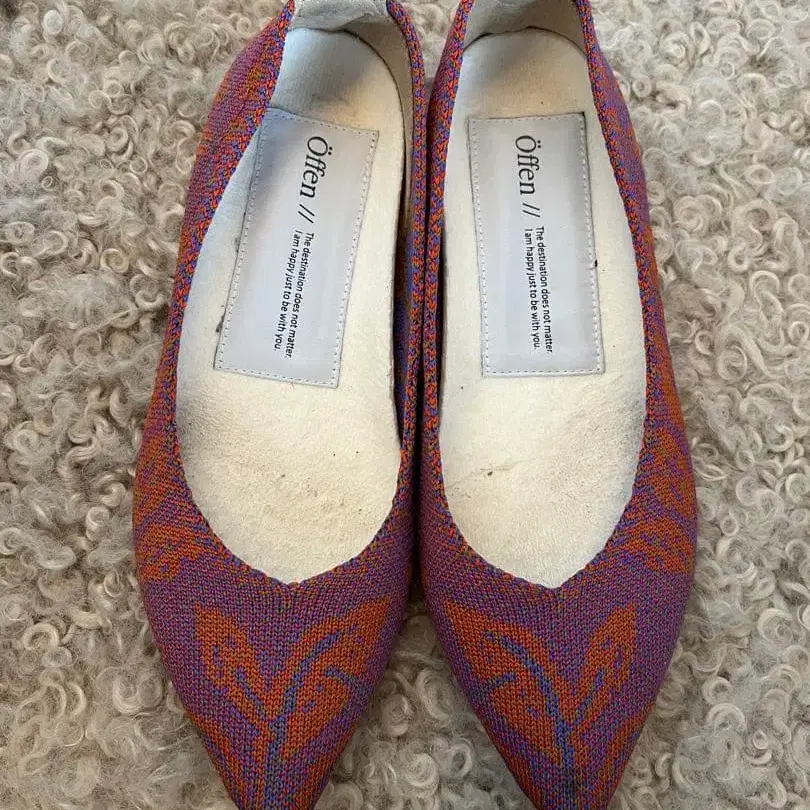 오펜 리프 무늬 핑크 오렌지 스틸레토 플랫슈즈 37