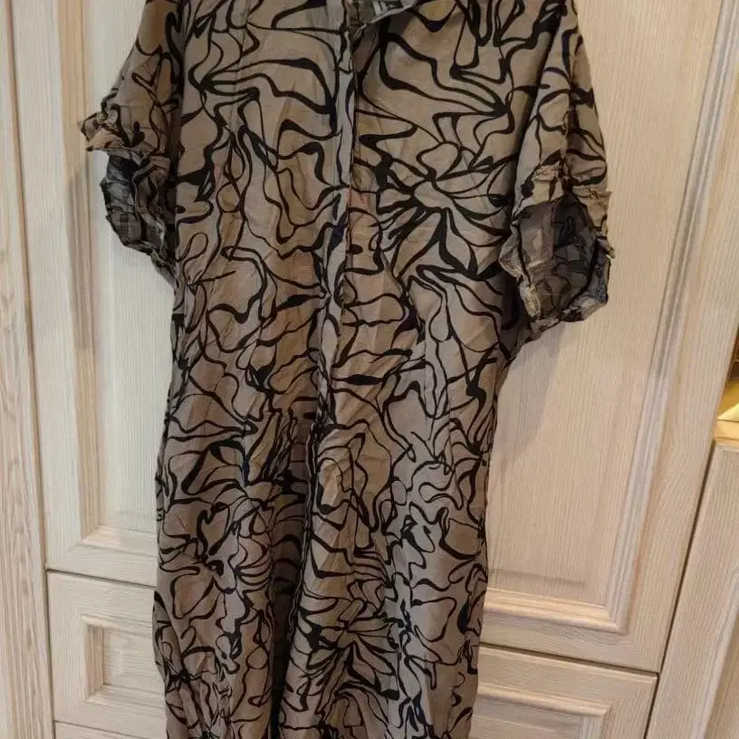베이지와 블랙 꽃무늬 반팔 튜닉