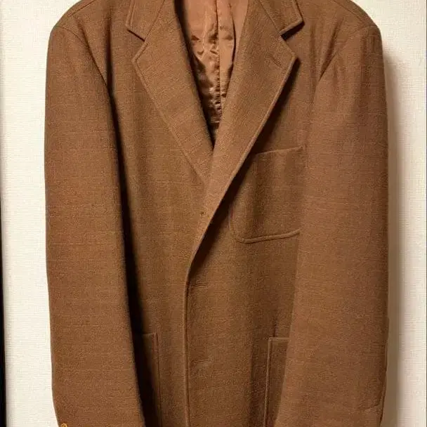브라운 색상의 테일러드 자켓, 단차이 3버튼, 센터 벤트. 여분 버튼 두 개가 포함되어 있습니다. 전체적으로 새상품급 퀄리티이지만, 오른쪽 소매 뒷면의 큐프라 부분에 일부 찢어짐이 있습니다(마지막 이미지 참조). 착용 시 밖에서 보이지는 않지만, 이 점 이해 부탁드립니다.