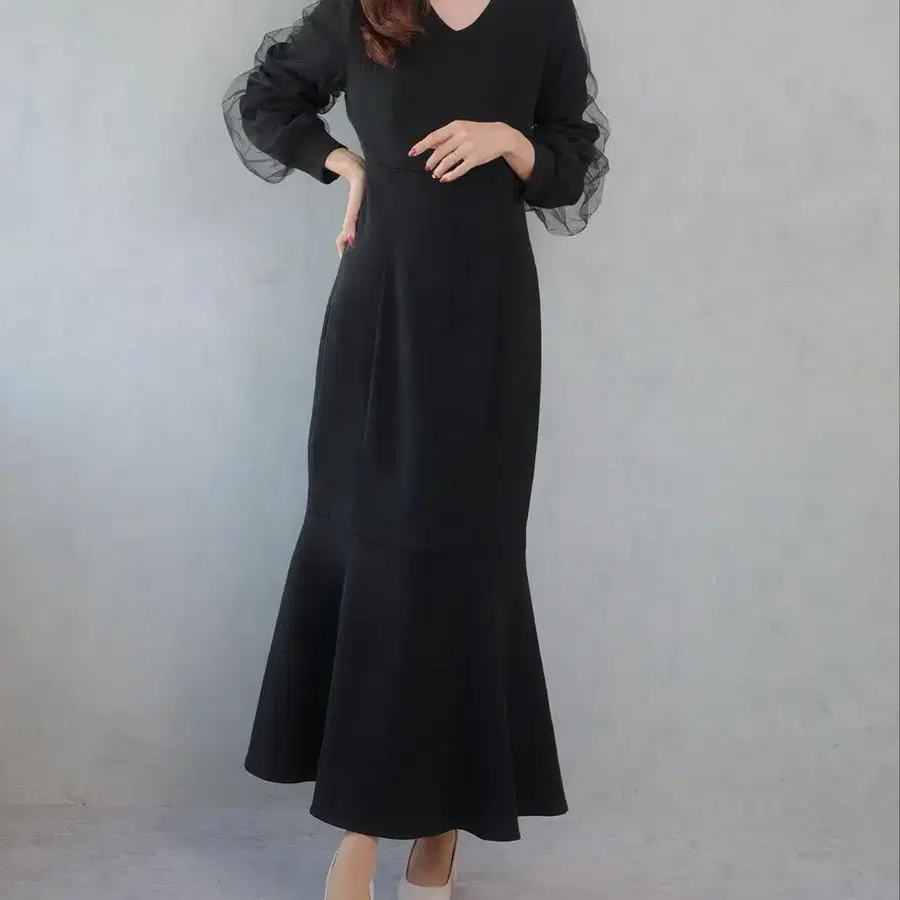 CENEA 오간자 슬리브 머메이드 원피스 S 블랙 포멀 새상품급