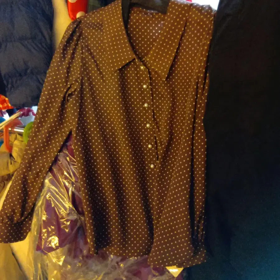 브라운 도트 무늬 긴팔 셔츠 사이즈 2