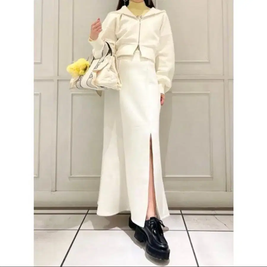 후드티와 슬릿이 들어간 스커트 세트입니다. 매장에서 구매 미사용 새상품 정품 종이 택 포함 색상 아이보리 사이즈 0 품번 SWCO245027 [릴랙스 무드와 깔끔함의 절묘한 조화, 후드티와 머메이드 스커트 맨투맨 콤비] [Design/Styling] 인기 많은 깔끔한 맨투맨 셋업을 이번 시즌에 맞게 업데이트했습니다. 캐주얼함을 억제하고 깔끔한 분위기로 제작된 짧은 기장의 지퍼 후드티와 하이웨스트 머메이드 스커트의 조합으로, 편안한 분위기를 연출하면서도 스타일업을 완성해 줍니다. 적당한 탄력과 광택감이 있는 아름다운 종이상자 니트 원단을 사용하여 착용감이 좋게 완성되었습니다. 후드티는 소매에 턱 디자인을 넣어 모던하게 연출했습니다. 밑단은 일부러 리브를 사용하지 않고 와이드 절개로 허리둘레를 깔끔하게 보이도록 하여, 깔끔한 하의와도 쉽게 매치할 수 있는 사양입니다. 스타일링에 편리한 양방향 지퍼. 툭 걸치기만 해도 내추럴 무드를 연출하는 아이템입니다. 머메이드 스커트는 타이트한 실루엣이지만 원단의 두께감이 바디라인을 너무 드러내지 않아 아름다운 실루엣을 연출합니다. 프론트 사이드에 슬릿을 넣어 활동성을 높였습니다. 등 부분에는 밴딩을 넣어 핏감을 살리고 라인을 예쁘게 마무리했습니다. 세트로 착용하시면, 편안한 상황에서도 스타일업을 완성할 수 있습니다. [Fabric] 아이보리, 다크 그레이, 핑크 3가지 색상으로 출시되었습니다. 매끈한 촉감의 두꺼운 맨투맨 원단은 지속 가능한 소재를 사용했습니다. 핑크는 스모키 컬러로 성숙한 인상을 줍니다. 스커트는 사이드 지퍼로 입고 벗을 수 있습니다. 사이즈 - S