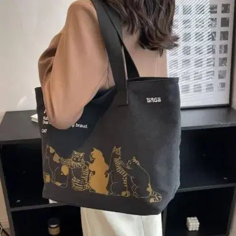 토트백 고양이 패턴 블랙 토트 숄더 캔버스 에코백