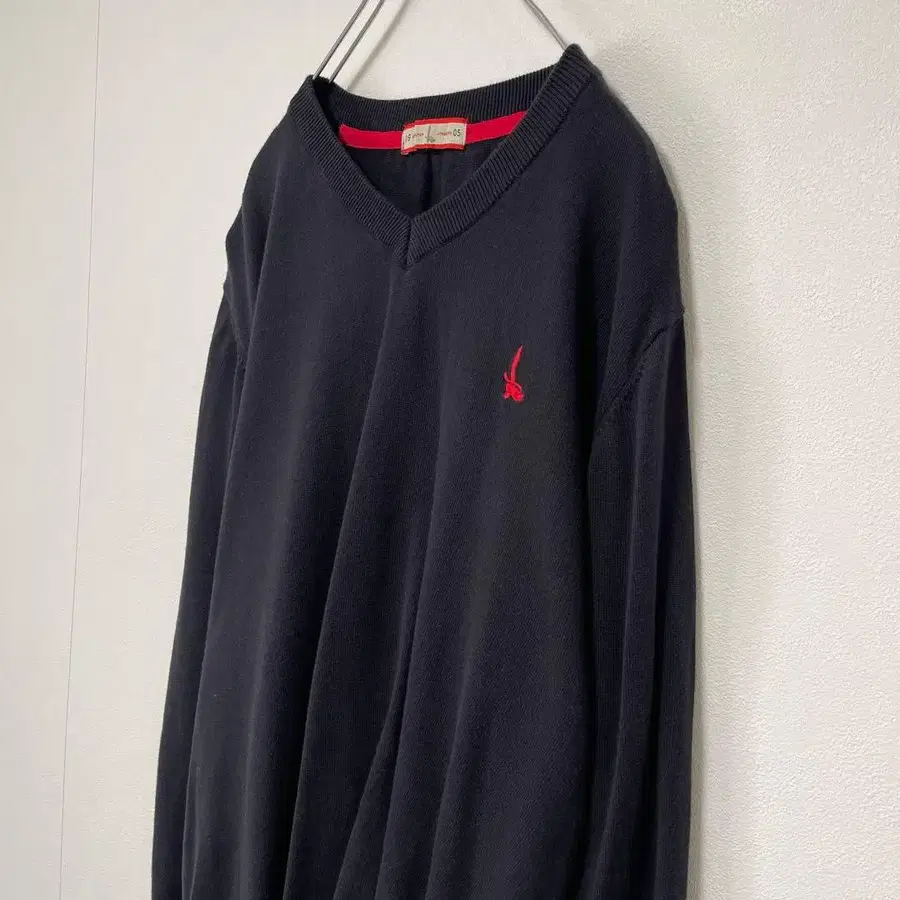 구제 니트 스웨터 자수 원포인트 블랙 V넥