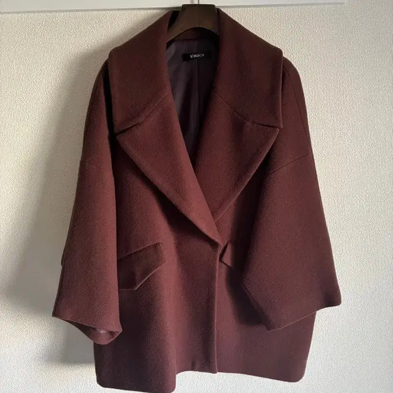 unaca 숏코트 보르도 와인 레드 오버 사이즈 울 코트