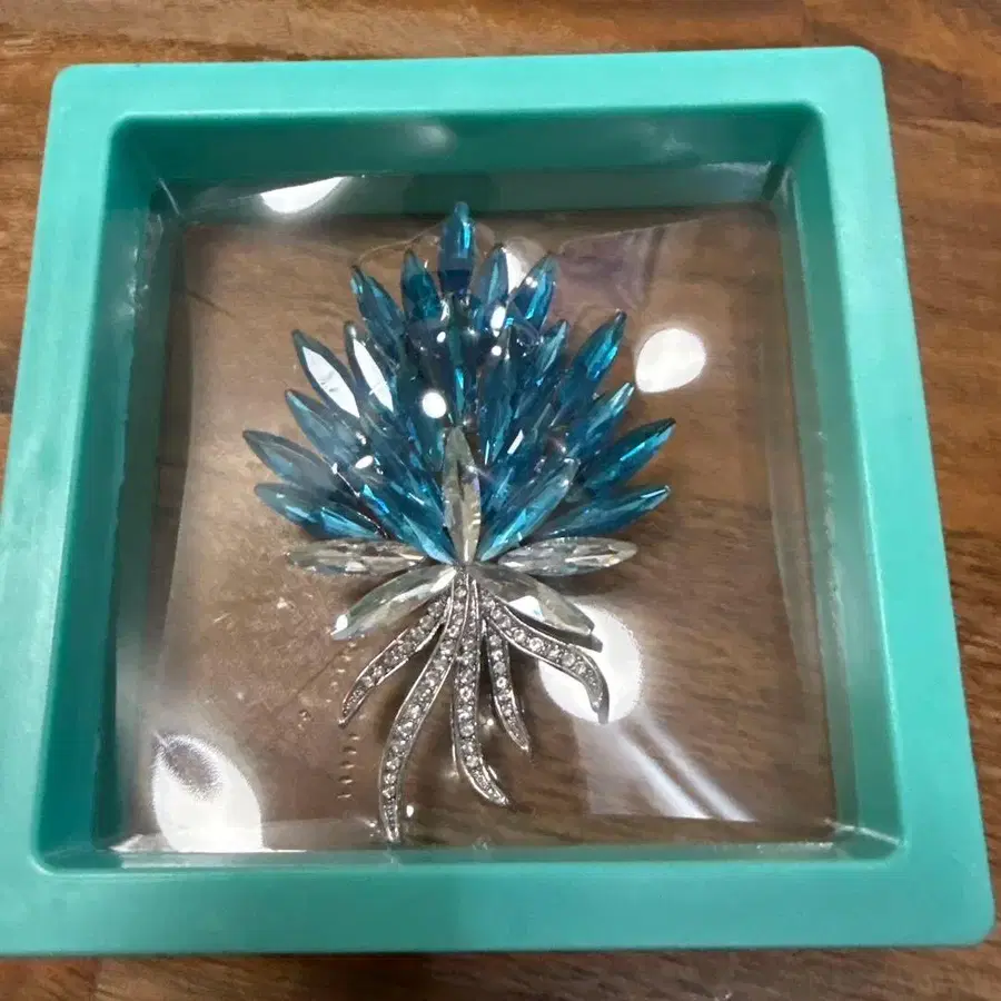 파란색 크리스탈 꽃 모양 브로치