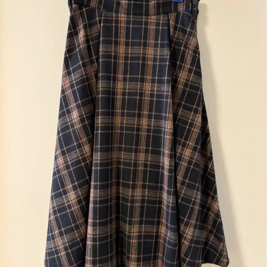 [ 미사용 ] 플레어 스커트 브라운 블랙 체크 무늬 무릎 기장 S