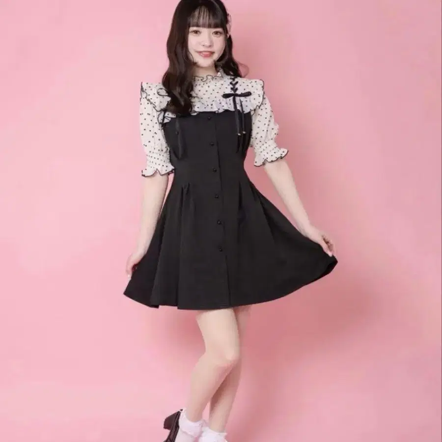 [ROJITA] 하트 도트 레이스업 반팔 원피스