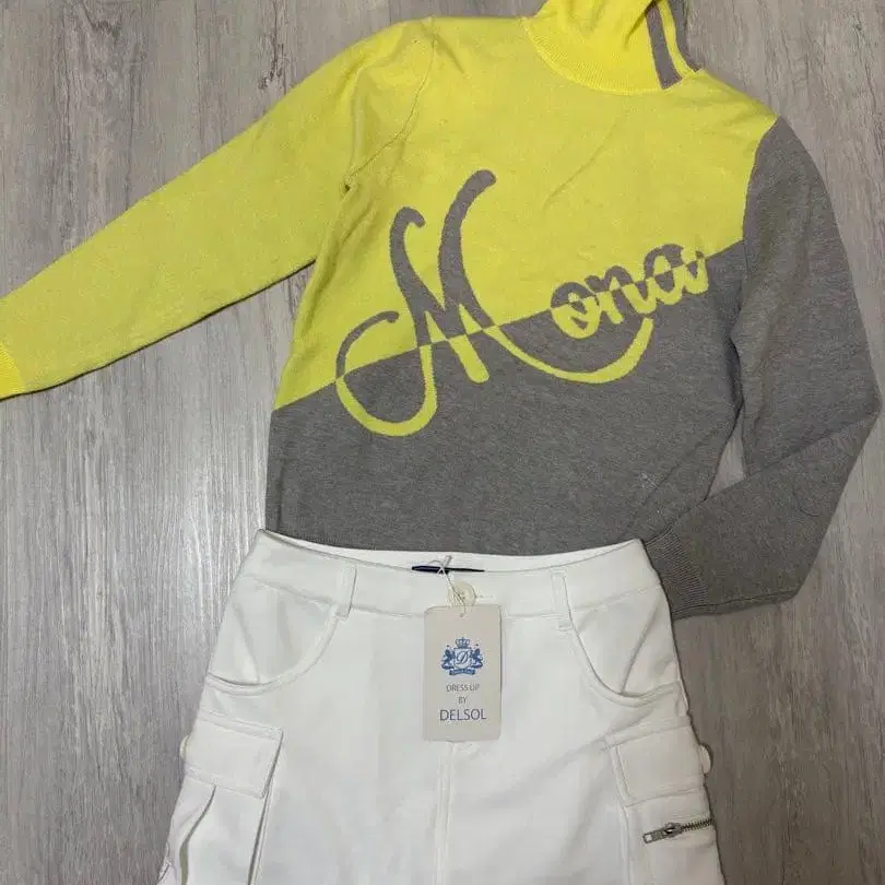 새상품 S 사이즈 모나델솔 골프 니트 스커트 셋업 그레이 화이트