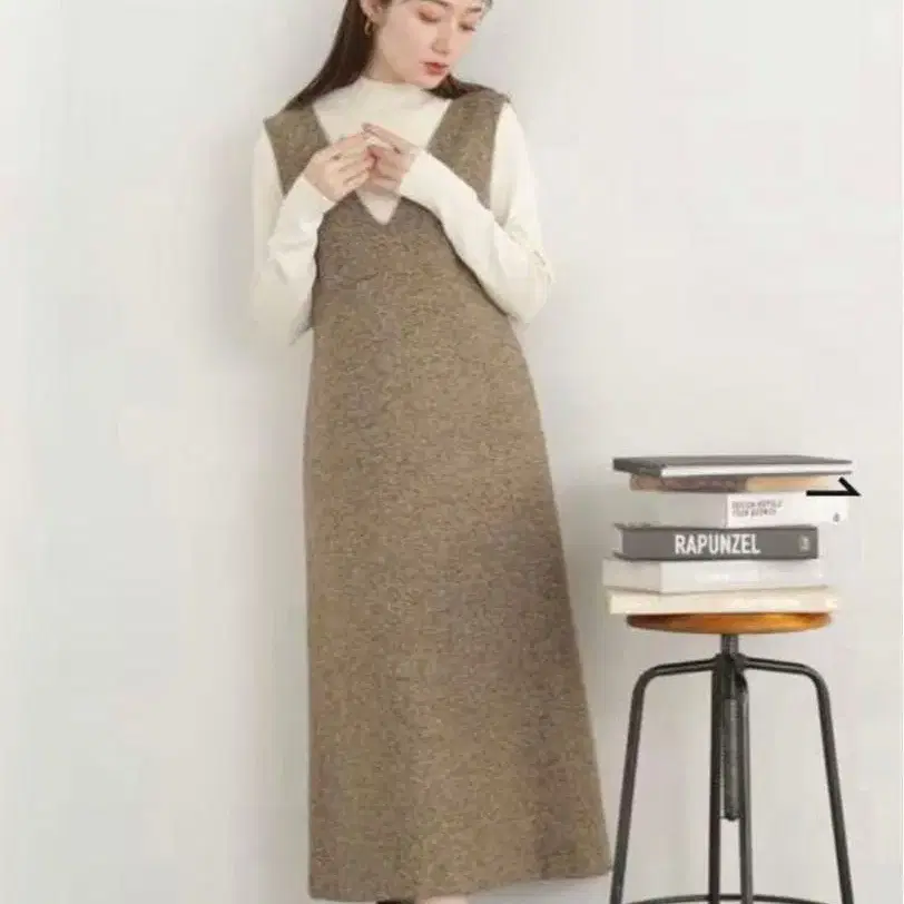 • 셀렉트 모카 핑거 슬리브 프티 하이 리브 원피스