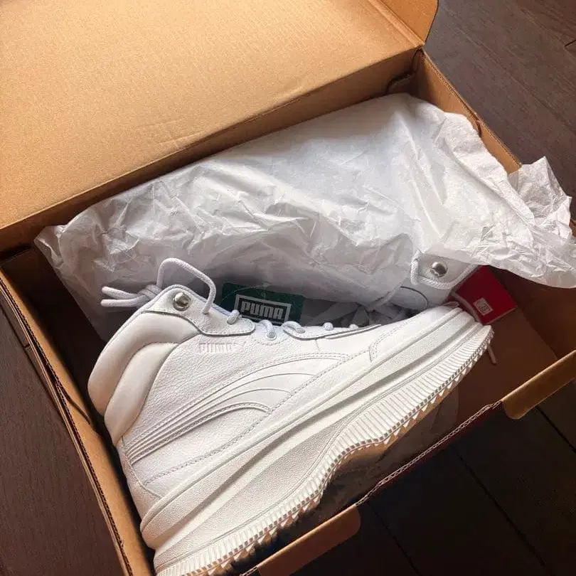PUMA 화이트 하이컷 스니커즈 박스 포함
