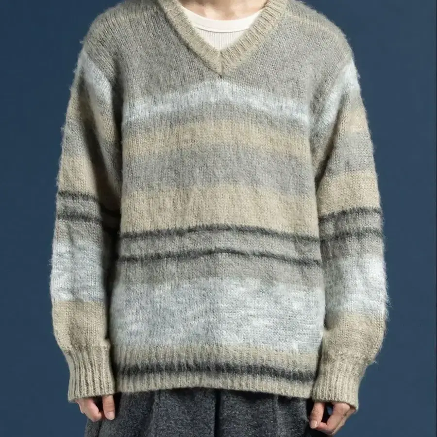 Casper john 그라데이션 믹스 멀티 보더 V넥 니트 M