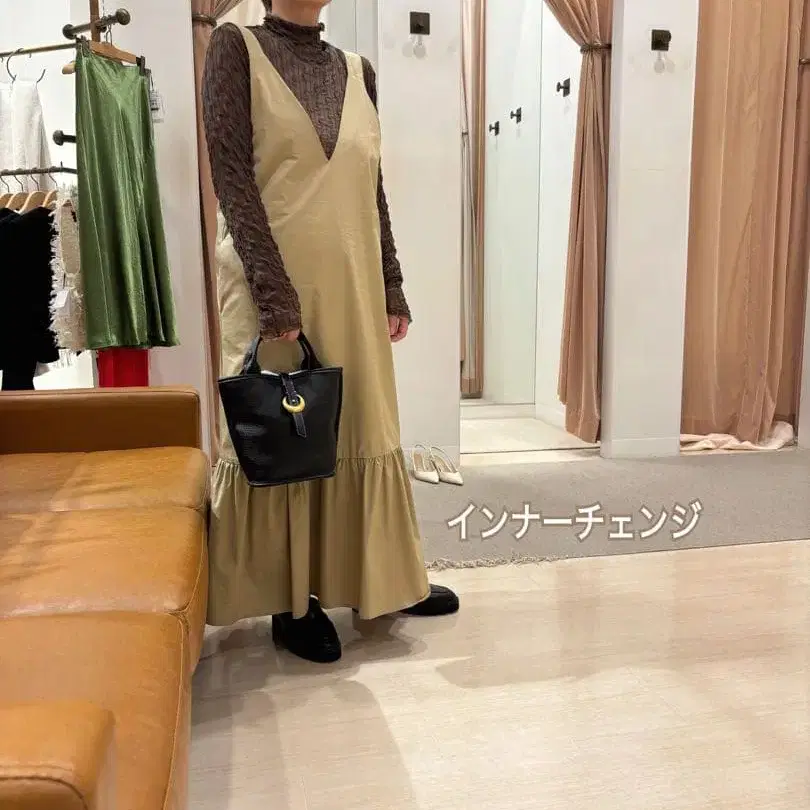 THE SHINZONE 그린 플리츠 스커트