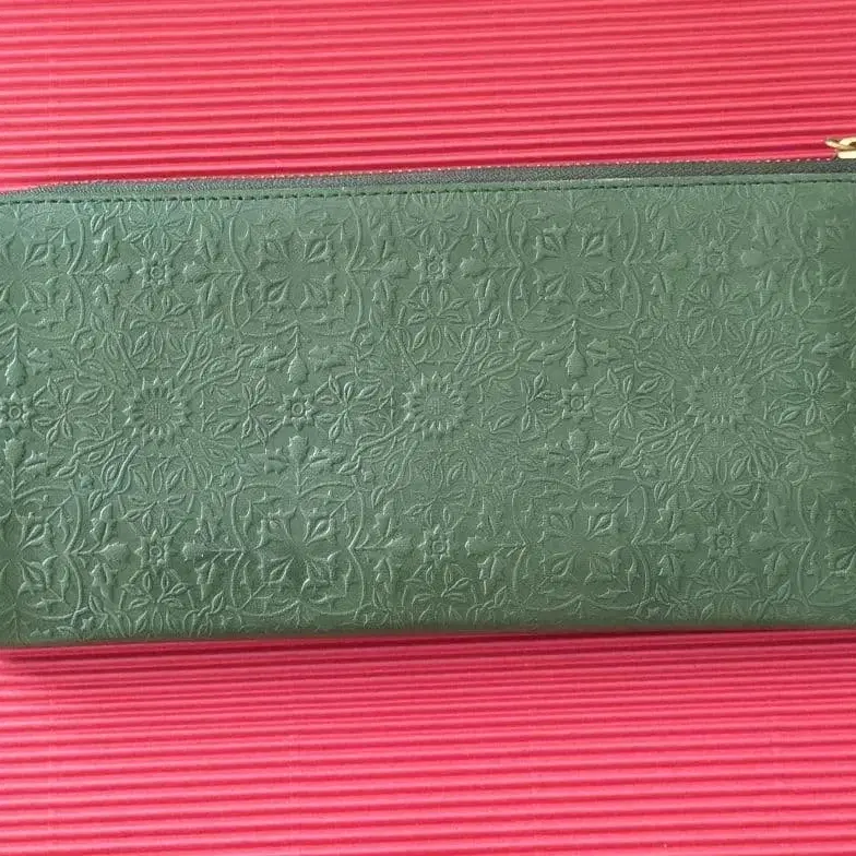 돈이 모인다고 하는 길조의 짙은 녹색 지갑입니다.