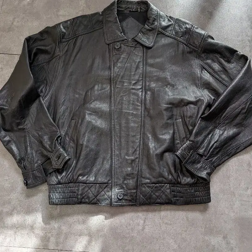 80s 90s 블랙 소가죽 램 가죽 레더 블루종 자켓 M
