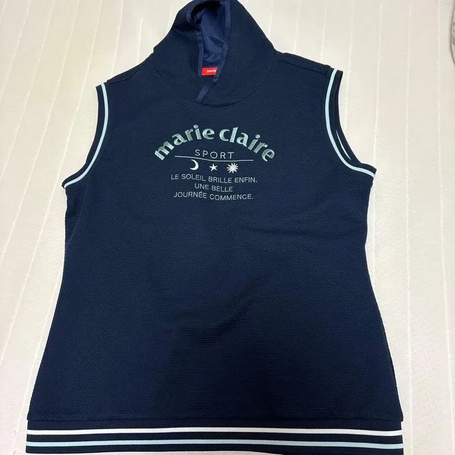 마리끌레르 메쉬 후드 부착 베스트 네이비