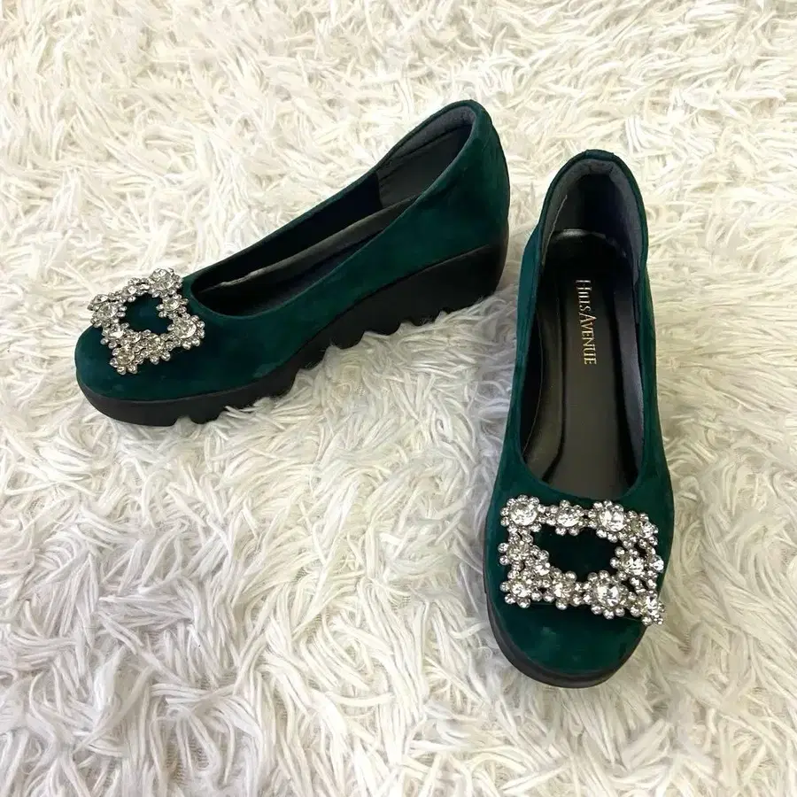 컨디션 최상 힐스아베뉴 펌프스 웨이브 밑창 비쥬 그린 22.5