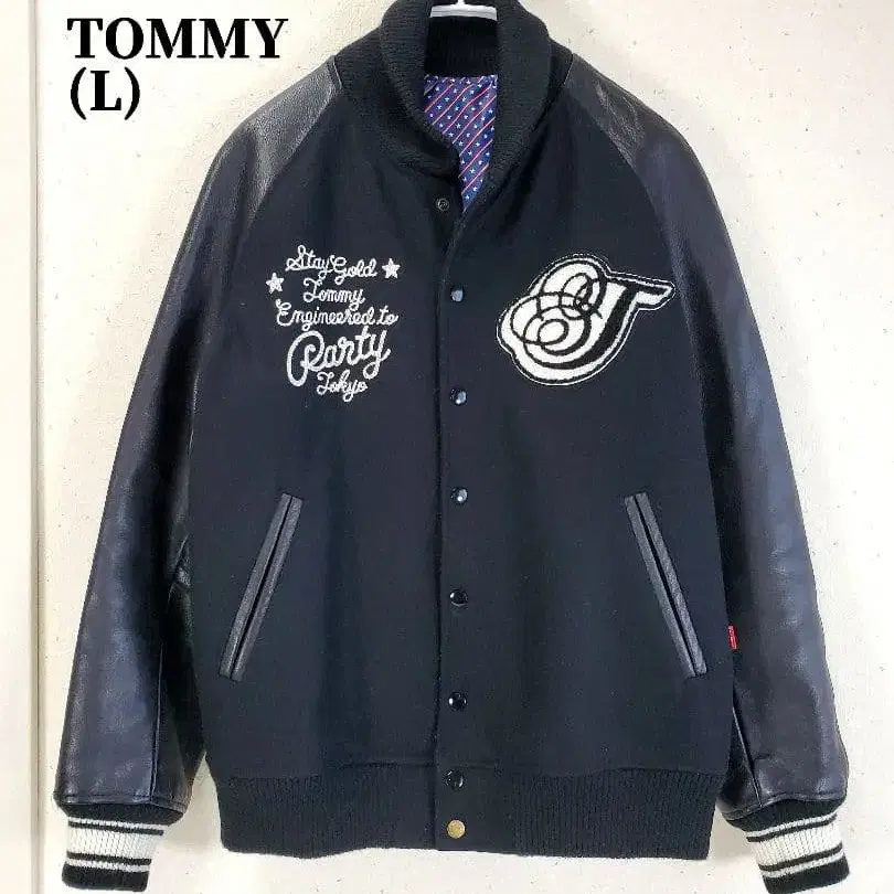 [ 상품명 ] 새상품급 ◆ M.W. FOR TOMMY 타미힐피거(TOMMY HILFIGER 타미힐피거) 소가죽 가죽 와펜 소매 가죽 바시티 자켓 남성용